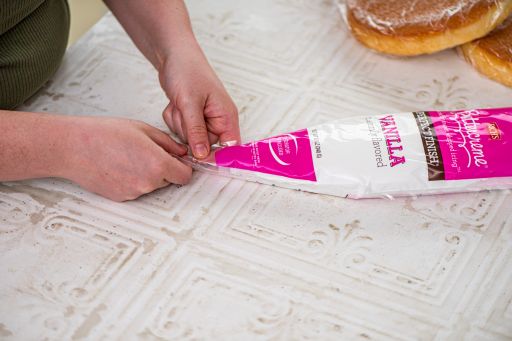 Step 4: Cut the tip of your icing bag where indicated and position the plastic tip in place.